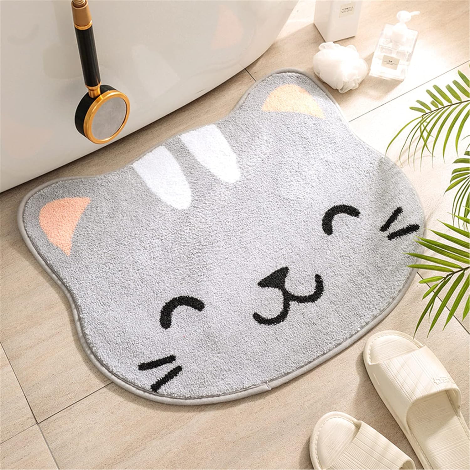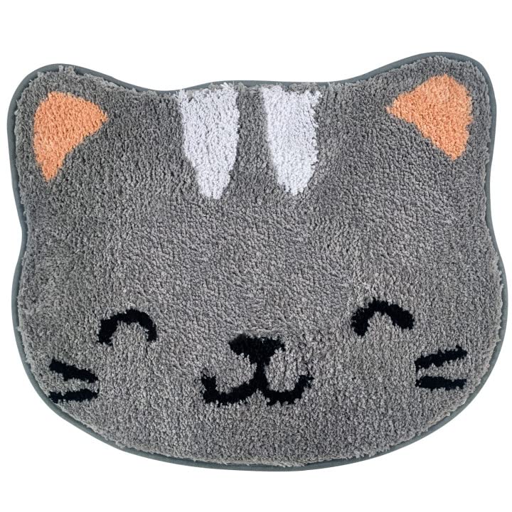 TEALP Cute Rug for Kids Room – Cat Shape Floor Mat (20×23″, Grey)